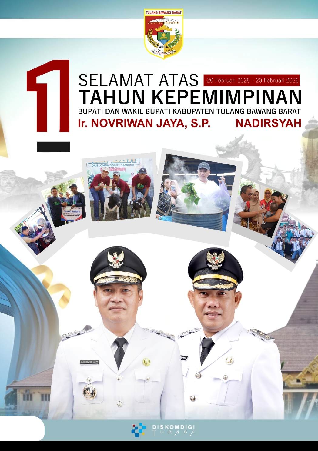 Tidak terasa satu tahun sudah kepemimpinan NONA Tubaba memimpin Pemerintahan di Kabupaten Tulang Bawang Barat (Tubaba). Setelah pasangan Novriwan Jaya-Nadirsyah memenangkan Pilkada calon tunggal Tubaba daerah yang berjuluk Bumi Ragemsai mengei Wawai, pada 27 Nopember 2024 silam. Kemenangan NONA 66,16% melawan kotak kosong dari jumlah suara sah 151.999 atau 96,05% yang dihimpun dari berbagai sumber.